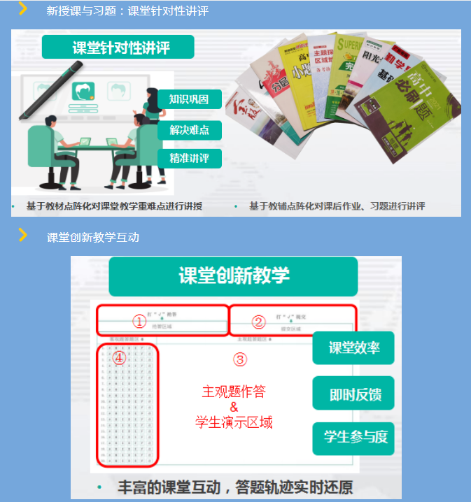 通過紙筆互動(dòng)的應(yīng)用可快速采集學(xué)生的測(cè)驗(yàn)反饋,當(dāng)堂測(cè)驗(yàn),當(dāng)堂出成績(jī),當(dāng)堂得到解惑,極大加速了課堂講解習(xí)題的效率,加速知識(shí)點(diǎn)掌握過程。并豐富過程數(shù)據(jù)沉淀,實(shí)現(xiàn)教學(xué)質(zhì)量監(jiān)測(cè)。