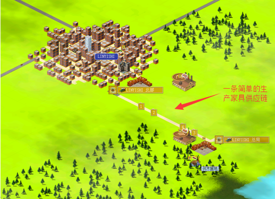 學生自由分組,一個組即為一個公司。每個學生在公司內(nèi)的分工不一樣,比如公司首席執(zhí)行官、首席執(zhí)行官、財務總監(jiān)、物流規(guī)劃師、數(shù)據(jù)分析師等多個角色。有專門對數(shù)據(jù)進行分析的,有進行物流鏈硬件鋪設的,也有根據(jù)市場的實時變化及時更新公司運營方案進行宏觀調(diào)控的。由教師制定地圖,幾個組之間競爭。